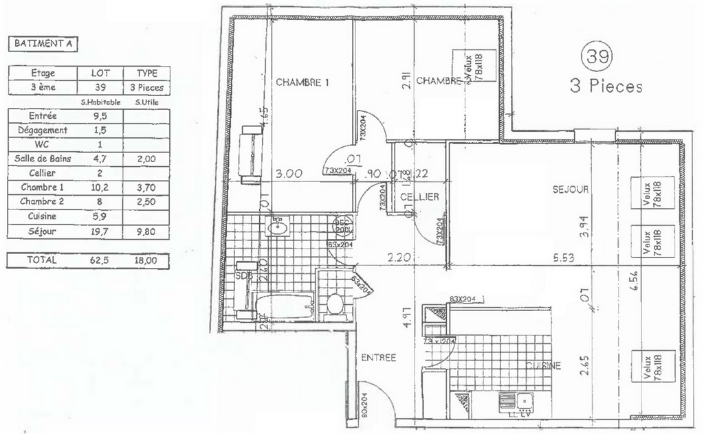 - Nous avons le plaisir de vous présenter un appartement 3 pièces d'une superficie de 62,5 m² loi Carrez (80 m² au sol) situé au dernier étage d'une copropriété de standing, idéalement positionnée en plein centre-ville !